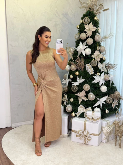 O Vestido Tricot Lurex com Fenda Frontal é a escolha perfeita para quem busca elegância e brilho em uma única peça. Seu tecido tricot com toque de lurex proporciona conforto e um acabamento sofisticado. A fenda frontal adiciona um toque moderno e sensual, ideal para eventos especiais ou para destacar seu estilo no dia a dia.
